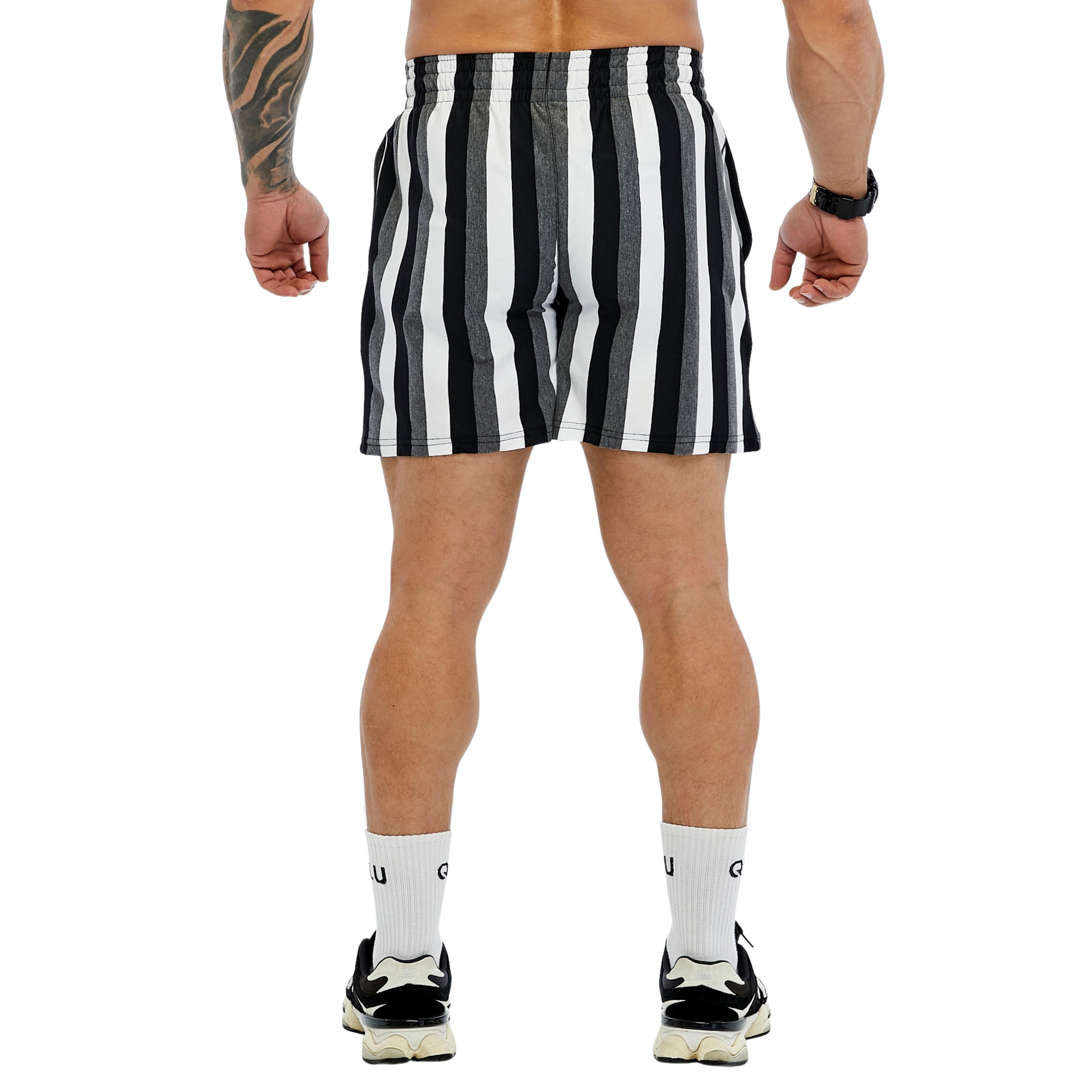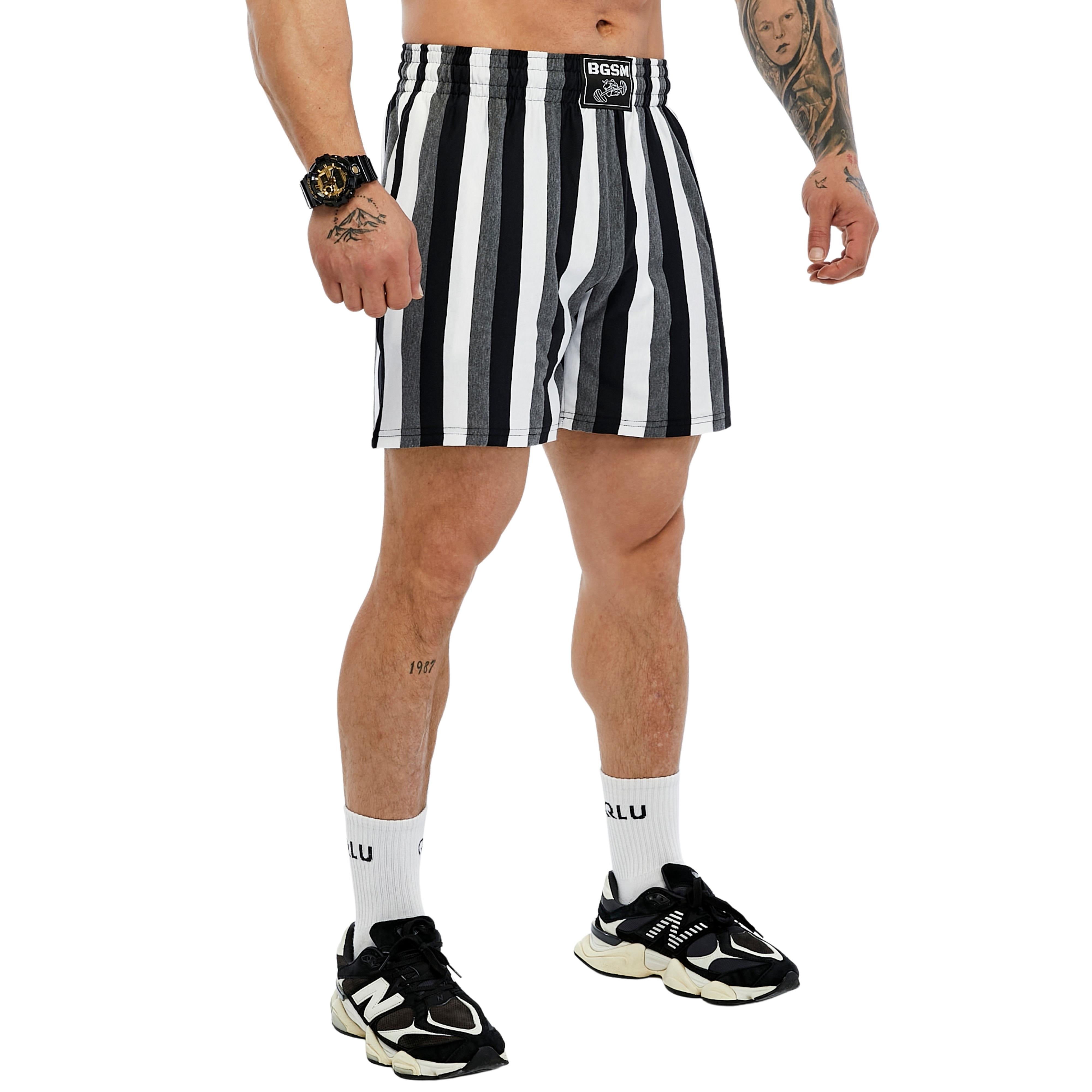 • These BGSM men's gym shorts combine bold style with practical performance for your fitness routine. Featuring eye-catching yellow and black vertical stripes, these athletic shorts make a confident statement whether you're hitting the gym, training outdoors, or engaging in your favorite sport. Crafted from 100% cotton, these lightweight fitness shorts offer natural breathability and comfort during intense workouts. The thin fabric construction ensures optimal airflow to keep you cool when the temperature rises, while the soft cotton material moves with your body through every rep, sprint, and stretch. The convenient lace-up waistband provides a customizable, secure fit that stays in place during dynamic movements. With a extra short length design, these training shorts offer unrestricted mobility for squats, lunges, and leg day exercises. The relaxed fit accommodates athletic builds while maintaining a streamlined silhouette. Perfect for bodybuilders, fitness enthusiasts, and active individuals who appreciate both function and distinctive style in their workout wardrobe.